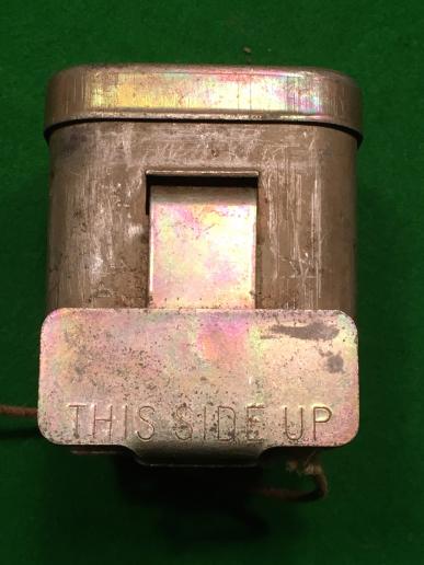 Unpainted alloy Release fuze M1 as used by US and special forces. Designed to be intiated by the removal of an object from the latch fuze which in turn would initiate the connected explosive charge. A load of at least 2lbs was required to maintain downward pressure on the latch and this type of fuze was widely used in booby traps. This example in excellent condition.