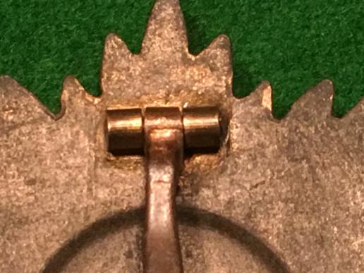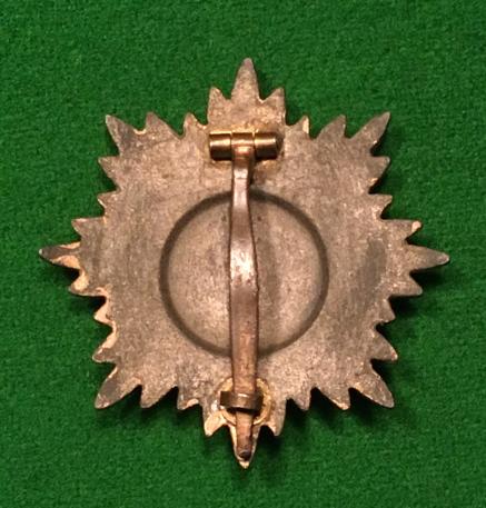 A WW2 Eastern Peoples award 1st class in gold with swords. Gold washed zinc construction with block hinge and flat wire retaining hook. In good, used condition, some defamation of pin from wear and wear to highpoints.