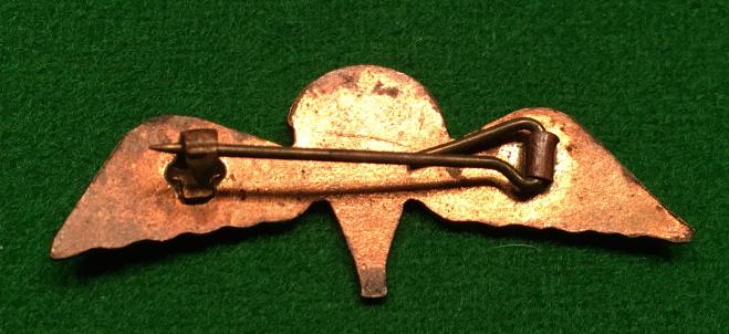 Enamel and gilt pinback sweetheart badge in the form of a British Airborne jump qualification wing. Good condition with undamaged enamel, lightly patinated.