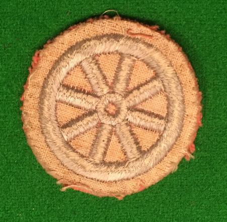 Arm badge for Motor-HJ personnel. Embroidered grey cotton thread on pink wool. Good, used condition with evidence of having been removed from a uniform.