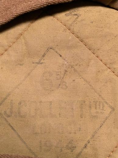 A 1944 dated, size 6 5/8 G.S.Beret by J.Collett Ltd. Slightly faded manufacture details etc., with inspection mark and bold stencilled service number. Evidence of a badge being fitted and in good, used condition with two minor grazes.