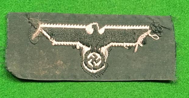 Artificial cellulose silk M36 type national emblem for use on the Wehrmacht feldmutze. BeVo type construction, cut from a roll and unused. Excellent condition, slightly dusty reverse.