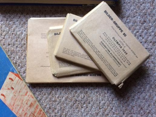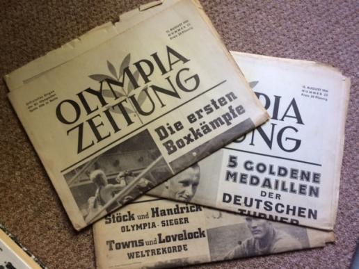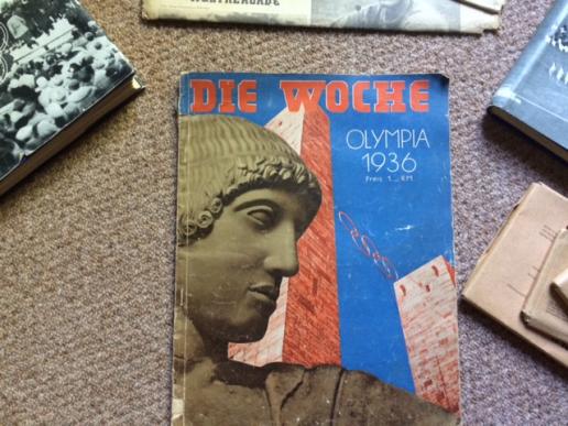 A quite historic book, newspaper and magazine groupling from the 1936 Berlin Olympics. All acquired from the same source in Germany, these have lain undescovered in a house fir the past 40 years. There are 3 different copies of the Olympic daily newspaper Olympia Zeitung. The weekly magazine Die Woche dedicated to the Olympic week. One copy of the souvenir book Olympia 1936. This was used to collect stick in cards purchased with cigarettes. This book is COMPLETE. Another totally mint and empty book along with unopened packets of the original photos to stick in! Quite a unique group.