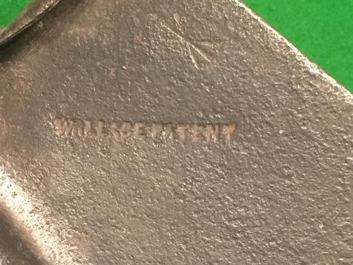 1882 ' Wallace Patent ' Entrenching Implement Mk II manufactured by Edw. Lucas & Sons, Sheffield in 1886. On issue from 1882 on a scale of one to every two men, this pattern was short lived and was abolished in 1892 but continued on issue to volunteer units into the early twentieth century. Good, used condition with clear markings to the spade face.