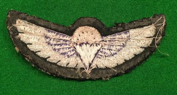 Embroidered cotton on wool SAS jump wing. Clear evidence of having been worn displaying a worn and slightly faded appearance. Upswept wings characteristic of post war patterns. Good, original example.