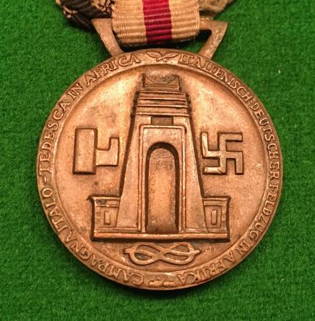 Bronze, die struck Italian-German medal. Made and marked accordingly ' Lorioli Milano ' this Italian designed medal was not considered an official German decoration but it's use was authorised in early 1942. This bronze example is manufacturer marked and the name of the designer Domenico de Marchis is marked to the rim. Good, slightly dusty condition with original tired ribbon.