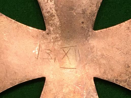 WW2 pinback EKI, . Steel core with silvered frame and block and barrel hinge and flat wire catch with tapered pin . Patinated finish to silvered parts with the date 13, XII, 43 scratched to the reverse. Good, overall condition.
