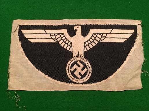 Machine woven eagle for use on the Wehrmacht sports vest. Excellent, unused example of these impressive pieces of insignia, with some very minor storage marks.
