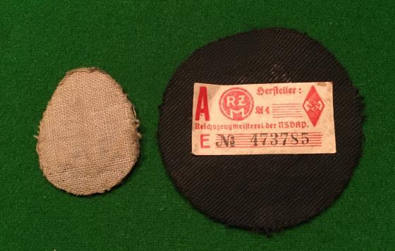 Two arm badges worn by members of the Marine HJ, one the rank badge for Scharfuhrer with RZM label to reverse and the other, the discontinued, yellow fouled anchor worn on the left cuff of the walking out dress. Both in good condition.