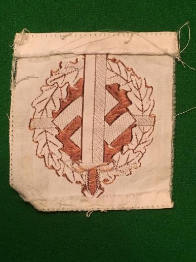 Original German Cloth SA Sports Badge in Bronze. Clear evidence of having been removed from an item of sports apparel, good, used condition.