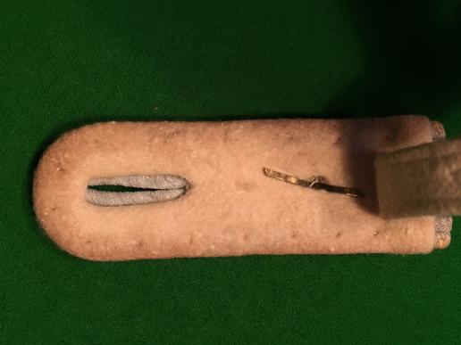 A matching pair of slip-on shoulder boards featuring white waffenfarbe for an officer of the rank of Obereutnant in the Infantry. Good, used condition with rubbing to wire thread.