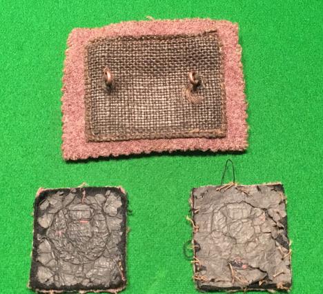 A good grouping of WW2 London Scottish insignia. White metal, die struck o/r's cap on Hodden Grey backing, accompanied by two embroidered blue thistles on Hodden Grey formation signs. Excellent, used condition.