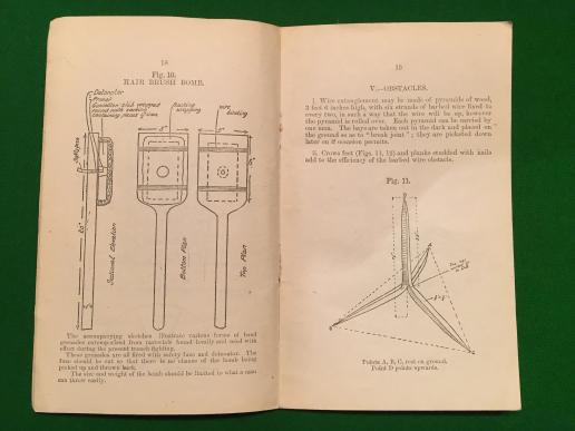 1914 Notes on Field Defences. 40pgs outlining early lessons in trench warfare. Includes sections on caltrops, jam tin and hair brush grenades, trench construction and military explosives. Ownership marked to ' A Coy 4th D.L.I. ' and ' 2/Lt.Dugdale '. Section missing to reverse cover contents all present and in good, clean condition. Interesting coverage of early trench warfare.