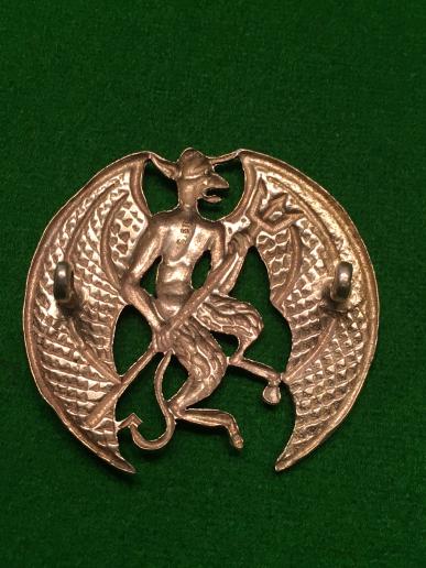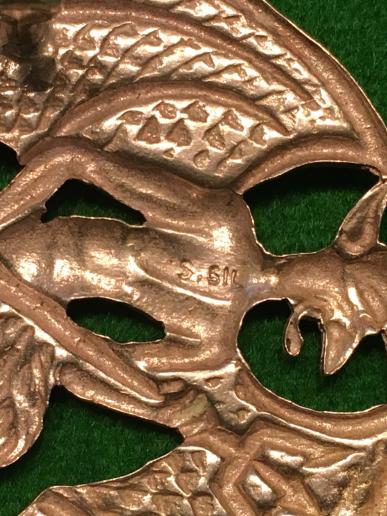 Inns of Court & City Yeomanry NCO's arm badge, originally worn on a green backing and probably pre War in date. A good die stamped sterling silver example.Two loops to reverse, stamped ' S.Sil ', good condition.