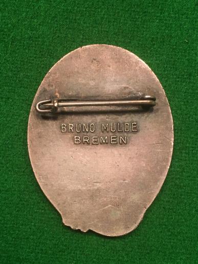 Cast, pinback day badge for SA-Gruppe Nordsee in Bremen 6-7th June 1936. Striking design in relief with manufacturer's details ' Bruno Mulde, Bremen ' to the reverse. Good condition with very minor wear to finish.