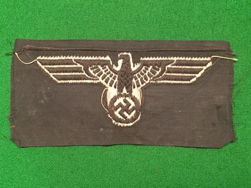 O/R's Panzer BeVo M36 eagle, grey thread on the black field, unused condition but dusty with light marking.