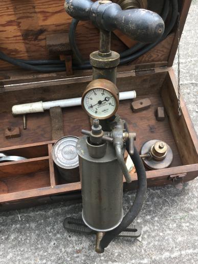 This example includes the all important pump, the collars, hoses, colletts, and clips and even a tin of sugar all contained in the original box marked to the lid ' S.S.II '. Manufactured by Aldous & Campbell serial number 2169.