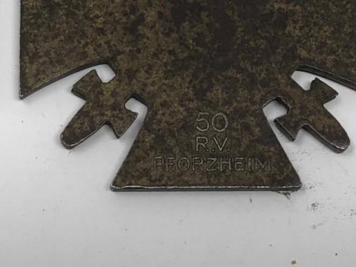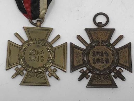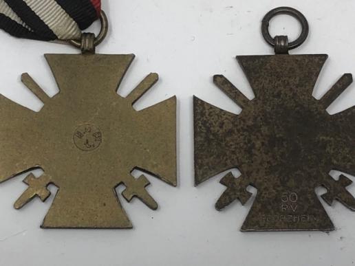There were over 8 million of these issued, so not an uncommon medal. These have different makers, H&L co/50 RV Pforzeim…. and one has the original ribbon.