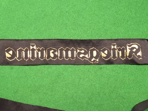 Full length, unissued ' Kriegsmarine ' cap tally. Wire on crepe construction in excellent condition with some storage ' spotting '.
