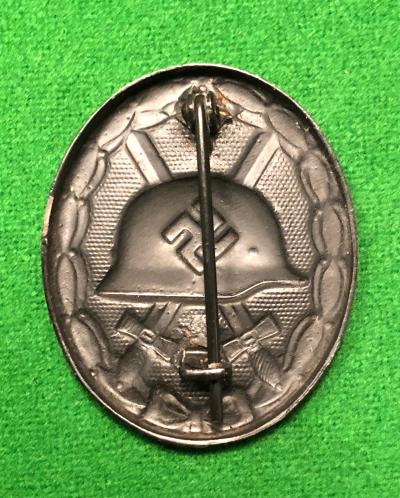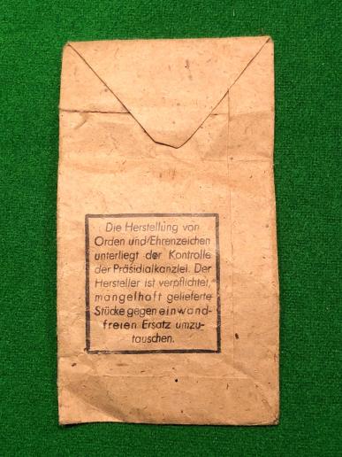 WW2 Wound Award in black. Die stamped example with needle pin accompanied by it's LDO packet and paper wrapping. Excellent, overall condition with some very minor chips to edges and very minor corrosion to welds of hinge and catch.