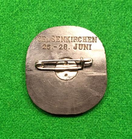 Black plastic, pinback day badge to mark the Gelsenkirchen Gautreffen held in June 1937. Good, clean condition.