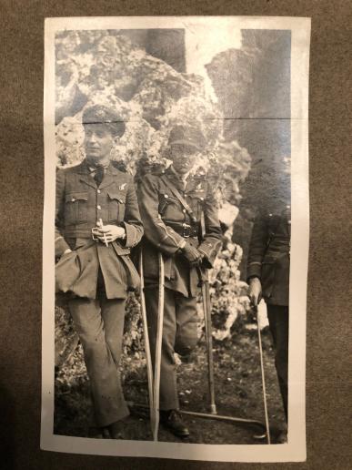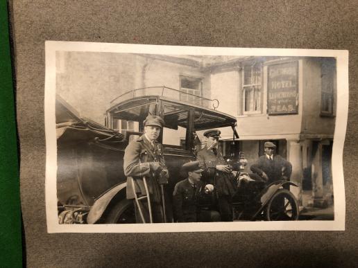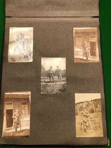 WW1 Photograph album containing some 84 pictures largely featuring an RFC Observer and his recuperation having lost a leg. Early pictures appear to show the subject as an o/r with the HAC, then in flying clothing and then in various hospitals along with other RFC and RAF officers. Good uniform detail to a number of the shots that vary in size from ' Brownie ' contact size to postcard. Subject appears to have been decorated and there are a number of clues in the photographs that may lead to the identity of the subject and the various locations. Photographs in good condition, album is a little loose with loss to spine.