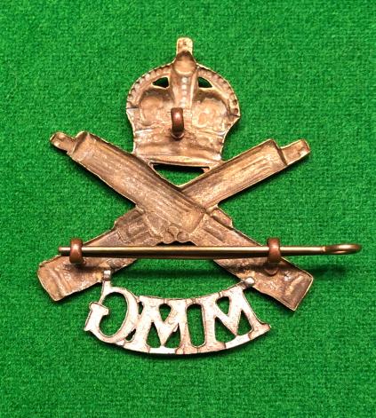 Bi-metal cap badge with slide to reverse. Brass crossed machine guns and crown with white metal MMG beneath. All three lugs present, patinated overall.
