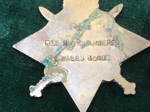 1914/15 trio to Pvt. HG CHAMBERS 17393 .. 14/15 Star, War and Victory medals with their original ribbons. Was purchased with a family grouping of WW2 items, and his son went onto be a Royal Marine commando in WW2. Good overall condition, not been cleaned. Not mounted, all loose.