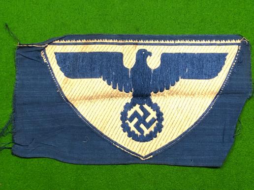 Machine woven eagle for use on the Postschutz sports vest. Excellent, unused example of these impressive and uncommon pieces of insignia, with some folding and very light marking.