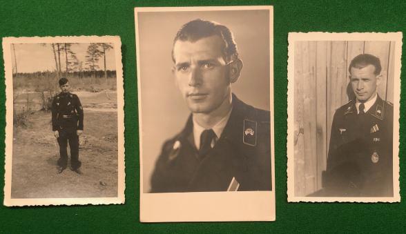 Grouping to Uffz.Friederich Fritz Zizman of Pz.Rgt.27. Consists of Soldbuch ( missing photograph ), photographs of Zizman in Panzer uniform, RAD documents, Black wound citation, military hospital wound notification and an Allied discharge notification.