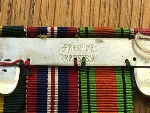 A super miniature medal group, mounted as worn by SPINK &Son Ltd London. Consisting of an OBE, VICTORY and DEFENCE medals along with a TERRITORIAL long service medal with bar. Pin back, and all medals have toned nicely. Possible research project with Spinks records.