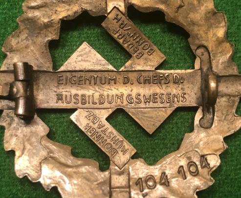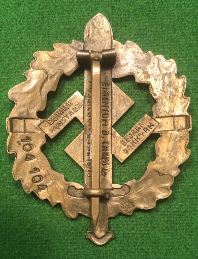 An early brass made bronze class SA sports award in good, used condition with some of the lacquered finish remaining. Fully maker marked and issue numbered 104104