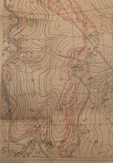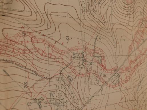 1:20000 Trench Map Edition 3 Sheet 57B S.W. centred on Malincourt showing the Hindenburg Line and the St.Quentin Canal with trenches corrected to 19/05/1917. Excellent, clean condition with the usual folding etc.