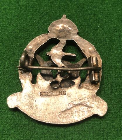 Silver and enamel, pin back brooch. Blue enamel R.N.V.R. scroll beneath the Crowned laurel wreath and between the Wireless Telegraphist wings, the reverse impressed "Sterling". Good, used condition, original pin fittings.