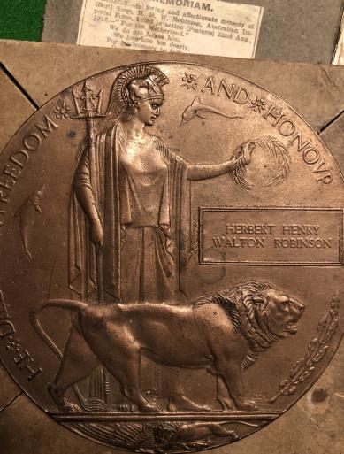 Poignant grouping to an 11th Bn AIF casualty. Grouping to 2552 Sgt.Herbert Henry Walton Robinson who was killed sometime between 30/08/16 and 23/08/16 and was subsequently honoured at the Serre Road Cemetery. Originally from Sheffield, Robinson emigrated to Western Australia before service in the AIF.