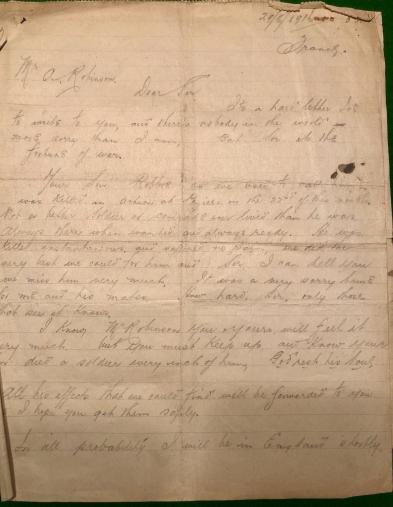 The 11th Bn was an experienced unit having seen service at Gallipoli before moving to France. It is probable that Robinson was one of 20 killed as part of an attack on Mouquet Farm, part of the larger Battle of Pozieres, itself part of the Somme Offensive. This is also alluded to in the letter to Robinson's parents from his commanding officer.