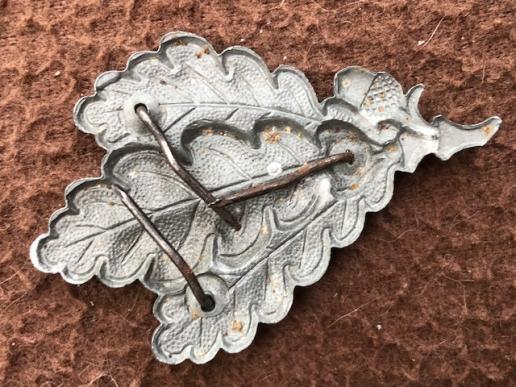This is a very nice 100% original grey metal oakleaf 'spray' badge worn by Third Reich 'JAGER' battalions during WW2. Was pinned to the left hand side of the M43 'ski' cap or Bergmützen. This badge shows a little age for it's 80 years, and is totally complete with the three fixing pins to the reverse. Ideal as a display item or to go on the cap itself.