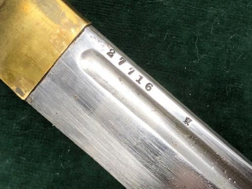 A very good, untouched example of the Katana NCO's sword as carried by Non commissioned officers in the Imperial Japanese army.The NCO swords were introduced on September 16, 1935.The hilts are made of cast aluminium instead of the wood and cloth of the Officers types. Were machine made but hand assembled. Hilt is complete and in good condition. The arsenal control marks are clear and visible on the The details were painted onto the surfaces to make them look like linen strapping a wood grips etc. About 50% of the paint is still present. Blade locking mechanism works perfectly. The steel scabbard has again 50-60% of the original brown/green paint still present. The scabbard throat is numbered 27716 and the matching number is on the blade sideways above the blood groove. The blade itself is in near mint condition, has never been used for post-war 'fighting' or hacking down the garden! Retains all the original bright polish and a perfect honed edge. There are a couple of old 'finger smudges' in middle of the blade, but would clean off. A very good example of a Japanese sword WW2 souvenir.
