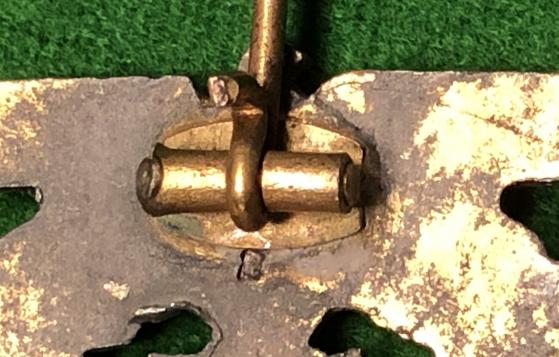 An example of a Kriegsmarine High Seas Fleet War badge by Friedrich Orth of Vienna. Gilded and silvered zinc construction with hinge and catch fittings typical of this manufacturer. Dished reverse marked ' fo ' in raised letters with a similar partial ghost mark to the left. Partial gilding to reverse with a painted later finish to wreath with highlights coming through. Priced accordingly.