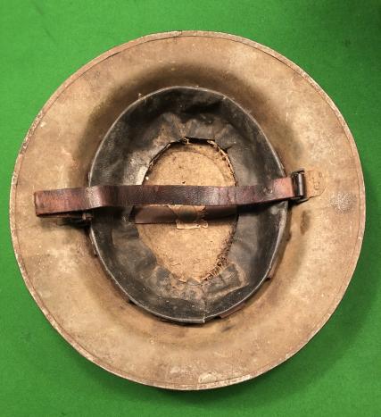 A good proportion of ithe original rough sawdust mixed khaki paint remains to inside & out with chinstrap in good condition with Brodie stamp to underside of oilcloth liner.