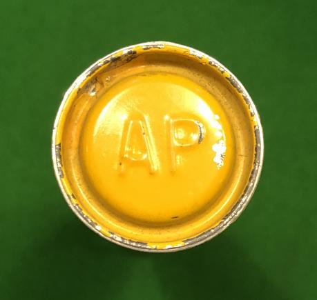 1945 dated US M21A1 Signal, Ground, Parachute. Fired from the M1-M8 series of spigot launchers the signal with an additional propelling charge taking it to a height of approx. 200m where the signal, in this case an amber star, indicated by the raised letters ' AP ' in yellow to the cap. This example in good, clean condition.