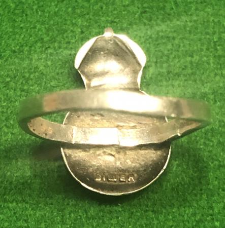 WW2 period silver and enamel matching RAF brooch and ring set. Pin back RAF sweetheart brooch marked silver to reverse with a similarly marked finger ring with matching enamel design. Good, used condition, lightly patinated.