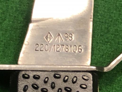 An example of a 1998 dated Aircrew Emergency Knife MkIII 22C/1278106. Designed to be attached to the right leg of the flying suit and to be used to cut harness or shroud lines without injury to the wearer. These knives are also known to be carried by SAS troops. Excellent, clean condition.