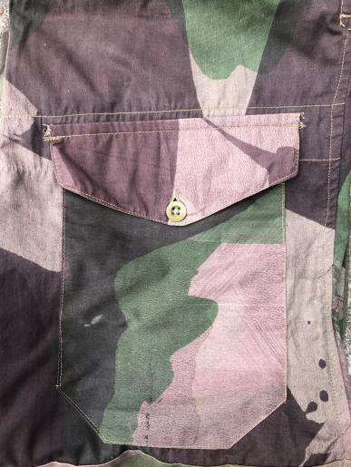 A good pair of WW2 British Trousers Windproof Camouflaged. Good, bright print with draw string intact, approx. size 3. No evidence of a label but inspection stamps to interior indicate manufacture in 1944. Both legs have been loosely hemmed and have lost the closures but otherwise good solid examples. The windproof camouflage sets were worn by some infantry units and the SAS in Europe later in the War, and also extensively used by French soldier in Indochina.