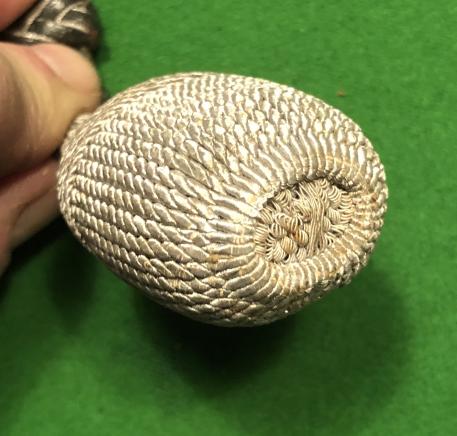 A good example of the standard sword knot used on dress swords carried by officers of the Wehrmacht .Green leather straps with bullion twin lines running the length with a green/bullion braided slide culminating in a bullion acorn ball.