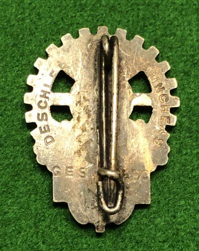 Silvered, pin back badge for the N.S.A.O or Nat. Soz. Reichsverband der Deutschen Arbeitsopfer. This labour organisation administered the welfare of German workers who became victims of industrial injury or accident. This example marked ' Deschler Munchen 9 Get Gesc. ' to the reverse and in good, used condition. Uncommon.