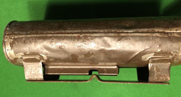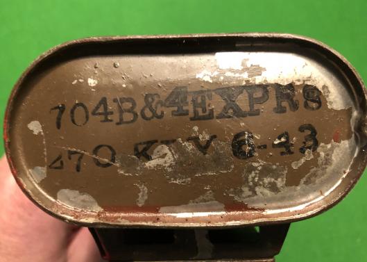 No.75,A.T.Mk.I Hawkins Grenade. Introduced in 1942 and designed primarily as an anti-tank mine this particular example would appear to have been manufactured in 1943. Containing either Ammonal or Nobels 704 the grenade was intiated by pressure onto the striker plate breaking the capsules of the No.27 igniter and detonating the explosive. This example was previously filled with Nobels 704 in June 1943 which is indicated by stencilled information to the base. Good proportion of the original finish present with some minor denting. Good example.