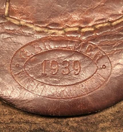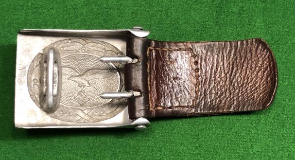 A pleasing example of an injection moulded 2nd Pattern Luftwaffe O/R's belt buckle with leather tab. Buckle manufacturer marked with the mark of Gustav Brehmer, Markneukirchen with the tab similarly marked and dated 1937. Good, used condition with light rubbing to highlights.
