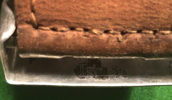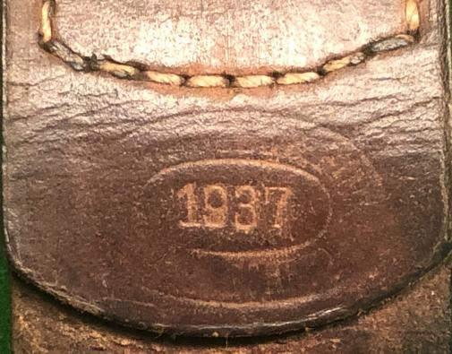 A good example of an injection moulded Heer O/R's belt buckle with leather tab. Buckle manufacturer marked under the roller with a mark I cannot quite make out with the tab marked to a maker in Ludenscheid and dated 1937. Good, used condition with light rubbing to highlights and residual painted finish to reverse.