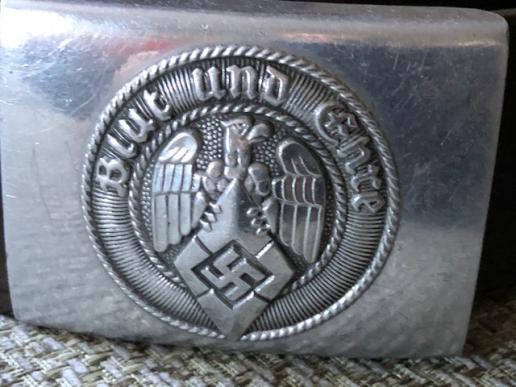 This is really difficult to find a complete and REAL Hitler Youth belt and buckle. it comprises of the original and very small dark brown/black leather belt which is tiny 26-30" waist, and is marked on the inside with the leather RZM maker and production code. The alloy buckle is in perfect shape, has been with the belt always and again is RZM marked on the inside.